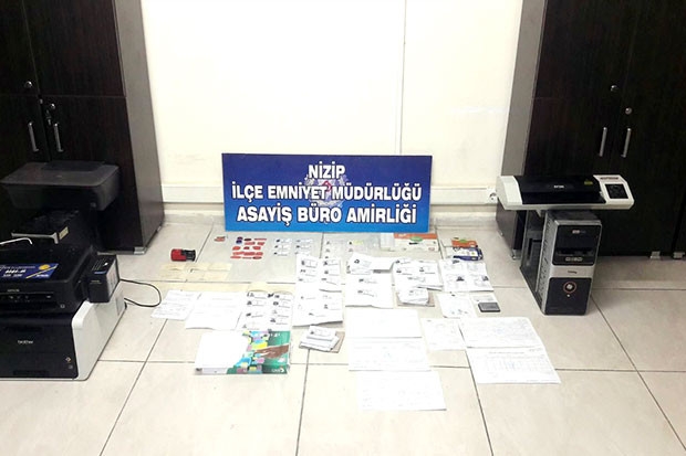 Edinilen bilgiye göre, Nizip İlçe Emniyet Müdürlüğüne bağlı Asayiş ekipleri, Nizip’te sahte pasaport, ehliyet, kimlik ve diploma gibi belgeler düzenleyip satan bir şebekeye dün sabah saatlerinde operasyon düzenledi. Mimar Sinan Mahallesi'ndeki bir iş yerine gerçekleştirilen operasyonda Ahmet Ş., Besil H. ile Velid H. isimli şahıslar gözaltına alındı. Ayıca polisin iş yerinde yaptığı aramada, birçok sahte kimlik, pasaport, ehliyet ve diploma ile sahte belge yapımında kullanılan çok sayıda elektronik eşyalara da el konuldu.