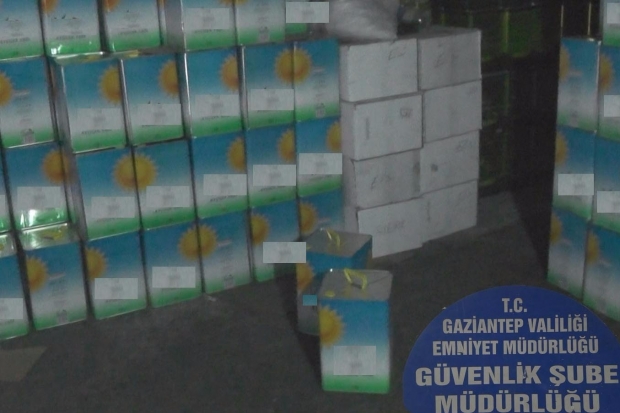 Gaziantep'te, polis tarafından bir depoya yapılan baskında marka ürünlerin taklidi 20 bin 782 litre ayçiçeği ve zeytinyağı ile 60 kutu şampuan ele geçirildi, 1 kişi gözaltına alındı.