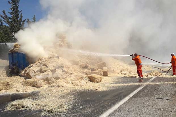 Olay, Gaziantep’in İslahiye ilçesi İslahiye-Hassa kara yolunun 8. kilometresinde meydana geldi. Hareket halindeki 27 GE 430 plakalı Erhan C. yönetimindeki tırın dorsesinde bulunan saman balyaları sebebi bilinmeyen bir şekilde alev aldı. Yangına Kahramanmaraş Orman Bölge Müdürlüğü'ne ait araçlar müdahale etti.