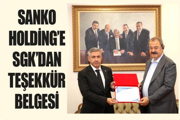 Sosyal Güvenlik Kurumu (SGK) Gaziantep İl Müdürlüğü tarafından SANKO Holding’e “Teşekkür Belgesi” verildi.