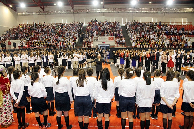 Abdulkadir Konukoğlu Spor ve Kültür Merkezi Spor Salonunda düzenlenen törene, Genel Müdür Melike Toklucu başta olmak üzere, okul yöneticileri, öğretmen, öğrenci ve veliler katıldı. Tarih Öğretmeni İbrahim Halil Yeşil, törende yaptığı konuşmada, Cumhuriyetin yüce Türk milletinin binlerce yıllık tarihinde ulaştığı en parlak, en muhteşem zirve olduğunu söyledi. Öğrencilere seslenen Yeşil, “Sizler, tarihimizi iyi öğrenmelisiniz. Büyük Önderimiz Mustafa Kemal Atatürk, ‘Bu eseri onlara bırakacağım ve gözüm arkada kalmayacak’ sözleri ile işaret ettiği ve Cumhuriyeti emanet ettiği Türk gençliği sizlersiniz. Taşıdığınız bu emanetin ağırlığı ve sorumluluğunun bilincinde olduğunuza inanıyor ve size güveniyoruz” dedi. Törende, ilkokul öğrencilerinin Cumhuriyet coşkusunu dile getirdikleri şiirin ardından sahnelenen ritm dans grubu gösterisi büyük beğeni aldı. Lise öğrencileri tarafından, barkovizyon eşliğinde Cumhuriyet’e giden yolun destansı hikayesi anlatıldı. Ortaokul korosunun seslendirdiği marşlar hep birlikte söylendi ve halk oyunlarının gösterisi Cumhuriyet coşkusunu artırdı. Törende Büyük Önder Mustafa Kemal Atatürk’ü canlandıran Sanko Koleji 11’inci sınıf öğrencisi İsa Alper Annaç ise Atatürk'ü canlandırdı. Yapılan makyaj ve kılık kıyafeti ile Cumhuriyetin Kuruluş yıllarını anımsatan Annaç, alandakilere hitaben, "Küçük hanımlar, küçük beyler! Sizler hepiniz geleceğin bir gülü, yıldızı ve ikbal ışığısınız. Memleketi asıl ışığa boğacak olan sizsiniz. Kendinizin ne kadar önemli, değerli olduğunuzu düşünerek ona göre çalışınız. Sizlerden çok şey bekliyoruz. Türkiye Cumhuriyetinin, özellikle bugünkü gençliğine ve yetişmekte olan siz çocuklarına hitap ediyorum: Batı senden, Türk’ten çok geriydi. Manada, fikirde, tarihte bu böyleydi. Eğer bugün batı teknikte bir üstünlük gösteriyorsa, ey Türk Çocuğu, o kabahat da senin değil, senden öncekilerin affedilmez ihmalinin bir sonucudur. Şunu da söyleyeyim ki, çok zekisin! Bu belli. Fakat zekanı unut. Daima çalışkan ol. Türkiye Cumhuriyeti Devletini sizlere bırakacağım ve gözüm arkamda olmayacak" diye konuştu.