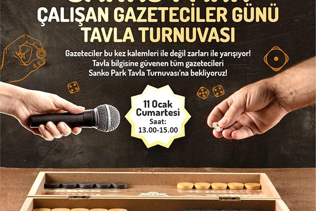 Çalışan Gazeteciler Günü’ne özel olarak düzenlenen turnuva 11 Ocak Cumartesi günü 13.00-15.00 saatleri arasında Sanko Park 3. kat eğitim ve konferans salonunda gerçekleşecek. Turnuvaya katılacak basın mensuplarına birer adet tavla hediye edilecek.