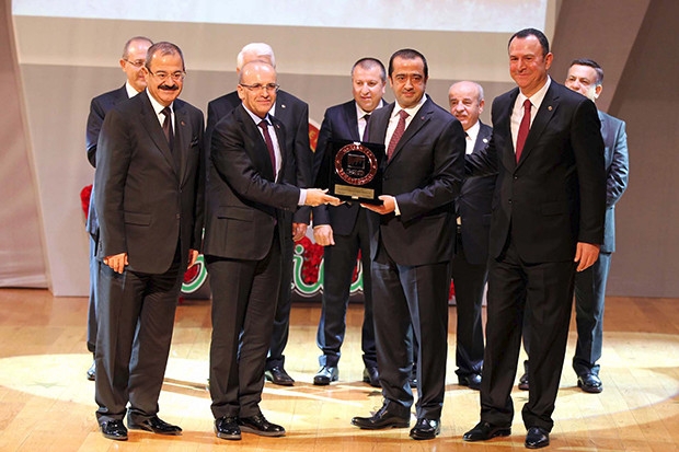 Başbakan Yardımcısı Mehmet Şimşek, Sanayi Odası Meclis Başkanı Mustafa Topçuoğlu ve Yönetim Kurulu Başkanı Adil Sani Konukoğlu ile birlikte, Türkiye’nin En Büyük 500 Firması arasında bulunan Sanko Tekstil İşletmelerinin ödülünü, Sanko Holding Yönetim Kurulu Üyesi Hakan Konukoğlu’na takdim etti.