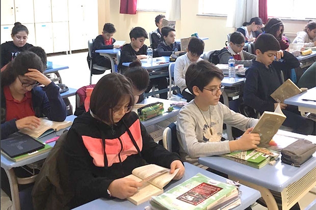 Özel Seçkin Kolejinde öğrencilere kitap okuma alışkanlığı kazandırmak amacıyla okuma saati düzenlenerek öğrenciler okumaya teşvik ediliyor.