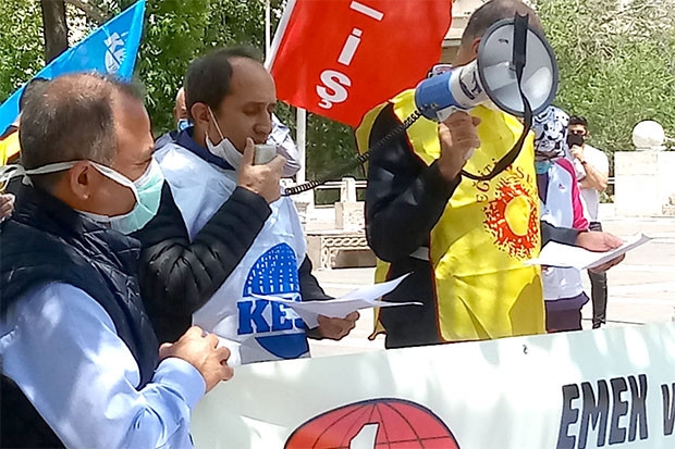 KESK Eş Genel Başkanı Mehmet Bozgeyik, 1 Mayıs İşçi Bayramı nedeniyle Yeşilsu Meydanında basın açıklaması gerçekleştirdi. Demokratik kitle örgüt temsilcilerinin de katıldığı basın açıklamasında Bozgeyik, ““Biz emekçiler sermaye değil halk egemenliğini esas alan, sömürüye karşı emeğin haklarını koruyan, toplumsal zenginliğe el koyan yüzde 1’in değil toplumun yararını esas alan yeni bir toplumsal düzeni kurmak için seferber olacağız. İnsan onuruna yaraşır bir iş ve ücret, kamusal sosyal güvenlik ve sendikal hakların eksiksiz güvence altına alındığı yeni bir toplumsal düzen kuracağız. Demokrasinin ve ifade özgürlüğünün tahrip edilmediği yeni bir toplumsal düzen kuracağız. Her türlü ayrımcılığa, cinsiyetçiliğe ve ötekileştirmeye karşı eşit yurttaşlığın, yurtta, bölgede ve dünyada barışın benimsendiği yeni bir toplumsal düzen kuracağız” dedi.
