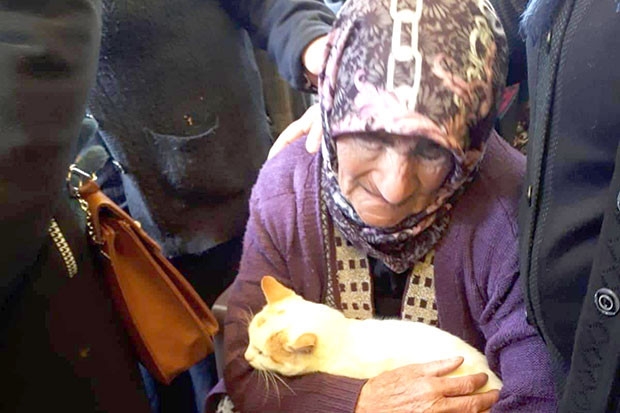 İran sınırında şehit edilen Uzman Onbaşı Ahmet Furkan Köse'nin ninesi Elif Köse, tören boyunca torunun tabutunun başından ayrılmayan kedisini kucağına alarak uzun süre sevdi.