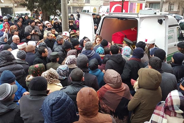 Şehit Akın Acar’ın cenazesi evinin önünden alınarak cenaze namazının kılınacağı Hacı Mehmet Şirikçi Camii’ne gözyaşları arasında götürüldü.