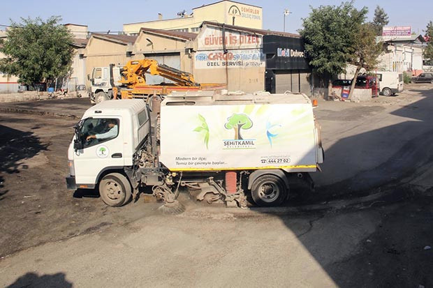 Şehitkamil Belediyesi Temizlik Müdürlüğü ekipleri, esnaf sahresini fırsat bilerek KÜSGET Sanayi Bölgesinde kapsamlı bir temizlik çalışması başlattı.
