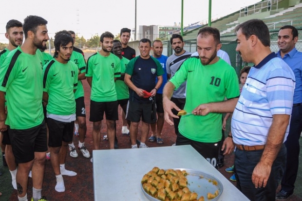 TFF BAL Ligi 2. grupta, mücadele edecek olan Şehitkamil Belediyespor 2015-2016 sezonun hazırlıklarını tamamladı. Yeşil-siyahlı ekibe moral ziyareti gerçekleştiren yönetim kurulu üyeleri, oyunculara baklava ikramında bulundu.