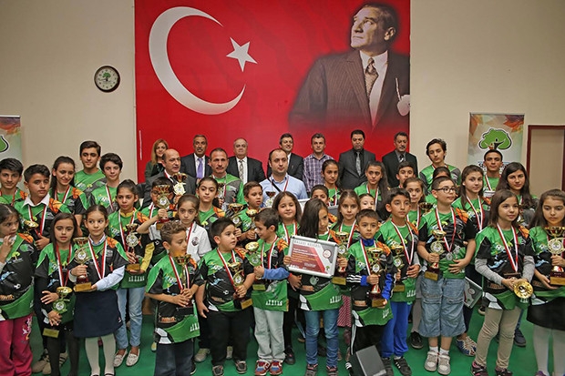 Şehitkamil Belediye Başkanlığınca, Cumhuriyetin kuruluşunun 93. yıldönümü ve Amatör Spor Haftası etkinlikleri çerçevesinde organize edilen 35. Geleneksel Satranç Cumhuriyet Kupası’nda dereceye giren sporcular, ödül töreninde kupa kaldırmanın haklı gurunu ve sevincini yaşadı.
