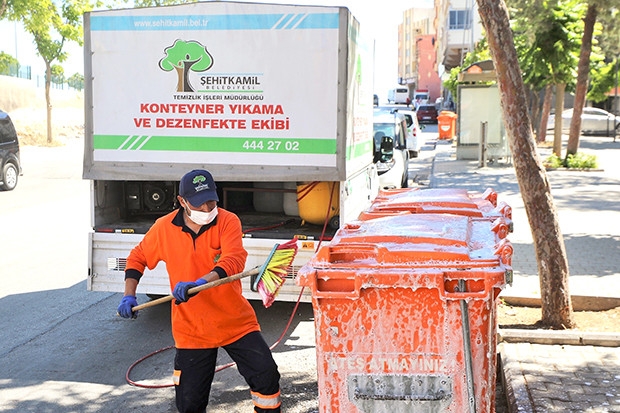 Mahallelerde temizlik ve hijyen çalışmalarını periyodik olarak yapan Şehitkamil Belediyesi Çevre Koruma ve Kontrol Müdürlüğü ekipleri, son olarak 29 Ekim Mahallesi’nde kapsamlı bir temizlik ve hijyen çalışması yürüttü. Ekipler, ilk olarak mahalledeki geniş cadde ve sokakları su ile yıkadı. Daha sonra tüm cadde ve sokaklar süpürge araçları ile temizlendi. Ayrıca mahalle içerisinde yer alan tüm iş yerlerinin çevresinin yanı sıra tüm evlerin kapı önleri de ekipler tarafından süpürülerek temizlendi. Mahalle sınırları içerisinde bulunan çöp konteynırları da önce yıkandı ardında da ilaçlanarak dezenfekte edildi.