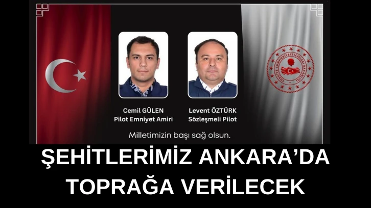 Gaziantep valiliğinden yapılan açıklamaya göre Şehit Pilotlarımız için yarın Emniyet Genel Müdürlüğü Havacılık Daire Başkanlığı’nda düzenlenecek törenden sonra Ankara’da toprağa verilecek.