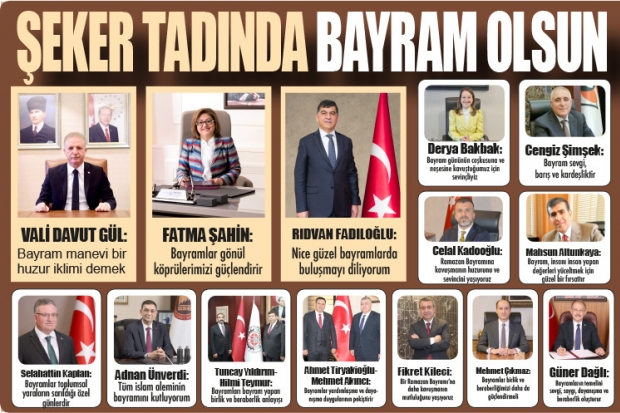 "Bizim toplumumuzda bayram demek, neşe demek, huzur demek, sevgi demek, kardeşlik demek, küslüklerin son bulduğu manevi bir huzur iklimi demek. Bayramın o gönülleri kuşatan ruhundan yola çıkarak bu günleri hayatın feyizli günleri haline çevirebiliriz. Dostlara yakın olmanın ne büyük bir nimet olduğunu belki de bu sayede kavrayacağız. Köklü inancımızın temelini oluşturan ve bizleri birlik içerisinde yarınlara taşıyacak olan bu güzel bayram günlerini; büyüklerimizi ve ihtiyaç sahiplerini hatırlamak, kırgınlıkları bir tarafa bırakıp yakınlarımızla kaynaşmak için önemli birer fırsat olarak değerlendirebiliriz. Dileğimiz odur ki, her bayram olduğu gibi bu bayram da bize göz aydınlığı olsun; güzel günlere, sağlıklı günlere, sıkıntılardan uzak feraha kavuştuğumuz günlere vesile olsun. Öte yandan geleneklerimizin bütün güzellikleriyle yaşandığı bu müstesna zaman dilimini, vatandaşlarımızın rahat ve huzur içerisinde geçirmesi amacıyla tüm kurumlarımızca gereken tüm tedbirlerin alındığını hatırlatmakta yarar görüyorum. Bayramı sevdikleriyle birlikte geçirmek için trafiğe çıkacak tüm sürücülerimizi de trafik kurallarına uymaya, trafikte daha dikkatli davranmaya ve gereken hassasiyeti göstermeye davet ediyorum. Bu vesileyle Aziz Milletimizin ve Gazianteplilerin Ramazan Bayramı’nı kutluyor; bayramın ülkemiz ve bütün İslam âlemi için hayırlara vesile olmasını diliyorum. Beraber nice bayramlara huzur ve esenlik içinde kavuşmayı, bu manevi atmosferin ve bayramın güzel coşkusunun daim olmasını temenni ediyorum."