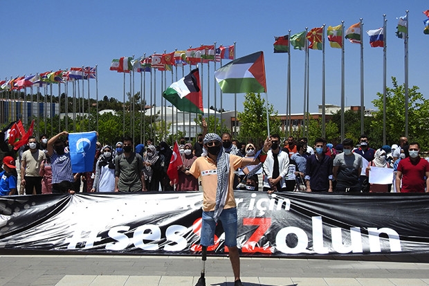 İsrail'in Kudus'e saldırılarına sessiz kalan ülkeler Gaziantep’te 200 gencin sessiz eylemi ile protesto edildi. 200 farklı ülkeyi temsil eden gençler, ağızlarını bantlayarak Filistin'e destek verdi.