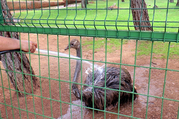Özsöyler, hayvanların barınaklarında içerisine girip, yüzebildiği küçük havuzlar oluşturduklarını kaydetti. Hayvanların yazlık bahçelerindeki havuzlara girip serinleyebildiğini belirten Özsöyler, "Her iki barınağımızdaki ayı, aslan ve kaplanların yazlık bahçelerinde ise serinlemeleri için birer tane yüzme havuzları bulunmakta. Hayvanlar sıcaklardan bunaldıkları zaman bu havuzlara girerek serinlemekte. Deve kuşlarımızı ve develerimize de hortumlarla suyla kendilerini sıcaktan önlemeye çalışıyoruz. Bu günün he saatinde değil. belirli saatlerde günde 3 ve 4 defa olmak üzere hayvanlara serinletme işlemini tekrarlıyoruz” diye konuştu.