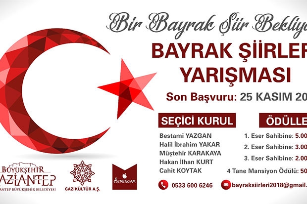 Gaziantep Büyükşehir Belediyesi, Gazikültür A.Ş. ve Serencam Yayınları’nın ortaklaşa düzenlediği “Bir Bayrak Şiir Bekliyor” adlı şiir yarışması düzenleniyor.