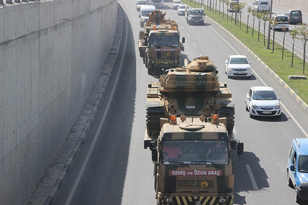 Sabah saatlerinde tanklar Gaziantep Hüseyin Ataman Kışlasından Şanlıurfa istikametine doğru konvoy halinde yola çıktı. Zırhlı araçların geçişi sırasında yoğun güvenlik önlemleri alındı. Suriye sınırına konuşlandırılacağı öğrenilen tankların sevkıyatına polis araçları ****luk yaptı.