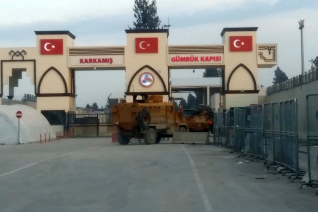 Suriye sınırındaki askeri birlikler teyakkuza geçerek, elleri tetikte hazır bekliyor. Zırhlı araçlar ise devriye atarak, bölgedeki kontrolünü sürdürüyor. Suriye'nin Cerablus kentine açılan Gaziantep'in Karkamış ilçesindeki sınır kapısında da sık sık askeri araçların giriş çıkışları gözleniyor. Sınır hattında devriye atan Türkiye'ye ait zırhlı araçlar, daha önce terörden temizlenen ÖSO güçlerinin kontrolündeki Cerablus'da da devriye atıyor.