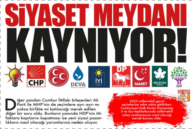 2023 milletvekili genel seçimlerine adım adım gidilirken, Cumhuriyet Halk Partisi Gaziantep il ve ilçe teşkilatlarında milletvekili aday sıralamasının nasıl olacağı merak konusu oldu. Diğer yandan Cumhur İttifakı bileşenleri Ak Parti ile MHP'nin de seçimlere ayrı ayrı mı yoksa birlikte mi katılacağı merak edilen diğer bir soru oldu. Bunların yanında HDP'nin ittifaklara kapılarını kapatması ise yeni siyasi pazarlıkların nasıl olacağı yorumlarına neden oluyor.