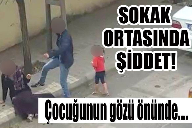 Gaziantep'te bir erkeğin, eşi olduğu tahmin edilen kadını çocuğunun yanında sokak ortasında tekme tokat darp ettiği anlar kameraya yansıdı.