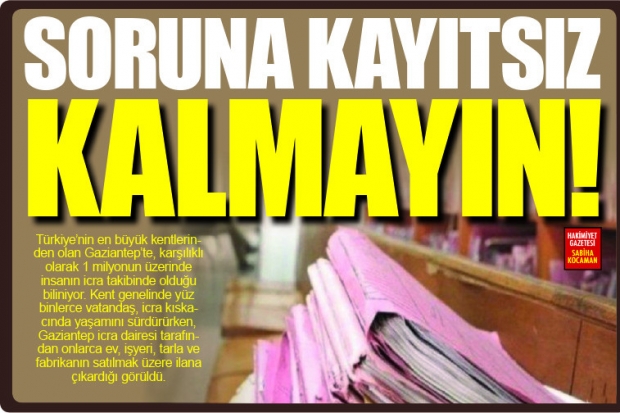 Türkiye’nin en büyük kentlerinden olan Gaziantep’te, karşılıklı olarak 1 milyonun üzerinde insanın icra takibinde olduğu biliniyor. Kent genelinde yüz binlerce vatandaş, icra kıskacında yaşamını sürdürürken, Gaziantep icra dairesi tarafından onlarca ev, işyeri, tarla ve fabrikanın satılmak üzere ilana çıkardığı görüldü.