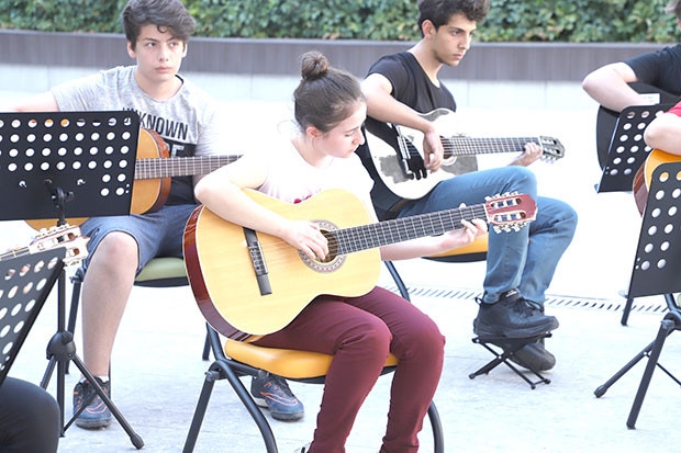 Şehitkamil Sanat Merkezi’ndeki gitar kursunda eğitim gören kursiyerler, açık havada ders işledi. ŞSM önünden geçenlerin oluşturduğu topluluk, öğrencilerin mini konserini büyük bir ilgiyle takip ettiler.