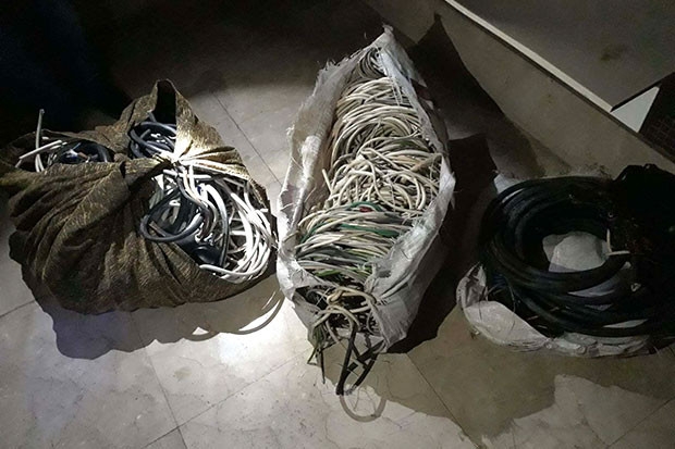Otel içerisinde yapılan incelemelerde, farklı katlarda çok sayıda elektrik kabloları, ses sistemleri, monitör, avize, bilgisayar kasası, aydınlatma lambaları ile hırsızlık amaçlı kullanılan demir kesme makası, kerpeten, maket bıçağı ve demir levye malzemeleri ele geçirildi.
