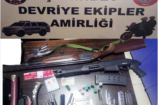 Araç sürücüsü şüpheli şahıs S.B. ise yapılan aramalar sonucu yakalanırken, evinde yapılan aramada ise 2 adet ruhsatsız tüfek, 8 adet kartuş, 2 adet gerçek tabanca, 2 adet kurusıkı tabanca 3 adet şarjör, 1 adet tabanca sürgüsü, 4 adet fişek ve 2 adet bıçak ele geçirildi.