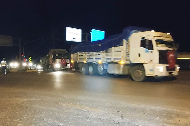 Suriye'nin İdlib kentinde devam eden harekata destek için yola çıkan askeri araç ve malzemelerin yer aldığı konvoy, İslahiye’den geçerek Hatay’da bulunan sınır birliklerine gitmek üzere yola devam etti.