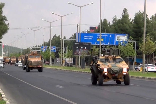 Gaziantep'ten doğu illerine yaklaşık 35 araçtan oluşan askeri araç sevkiyatı yapıldı. 5. Zırhlı Tugay Komutanlığı'ndan çıkan konvoyda, mühimmat, sinyal kesici cihazlar, yakın tanklarının bulunduğu kamyonlardan oluştu. Ayrıca konvoyda, zırhlı araçlar ve komandoları taşıyan minibüsler de yer aldı. Konvoy geçişi esnasında geniş güvenlik tedbirleri alınırken, konvoy Gaziantep'ten Şanlıurfa istikametine doğru seyir etti.