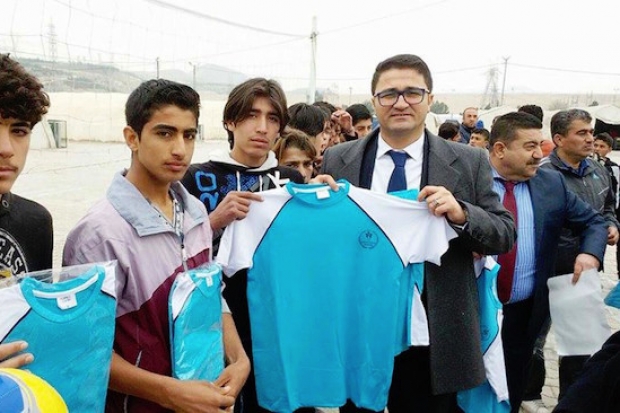 Nizip Kaymakamlığı ve Gaziantep Gençlik Hizmetleri ve Spor İl Müdürlüğü tarafından Nizip’teki kampta spor malzemesi dağıtıldı.