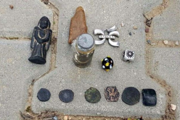 Bir otobüste yakalanan Suriye uyruklu zanlının bavulundan tarihi eserler ve esrar çıktı.