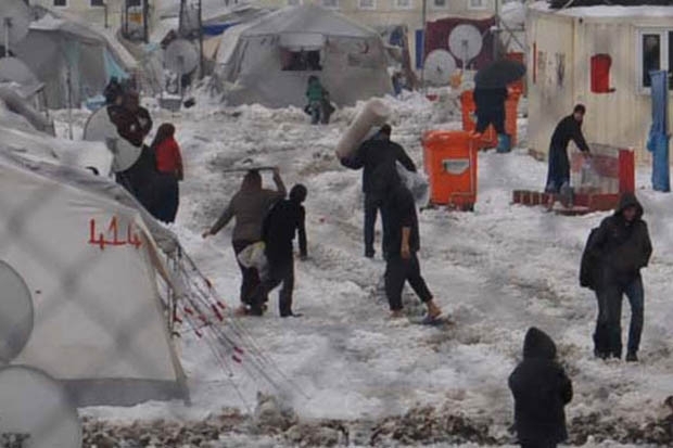 Kar yağışının ardından ilçeye 4 kilometre uzaklıkta 8 bin Suriyelinin barındığı bir nolu çadır kent ile 20 kilometre uzaklıktaki 16 bin Suriyelinin barındığı 2 nolu çadır kent beyaza büründü. Suriyeli çocuklar ise çadırlar arasında kar topu oynadı.