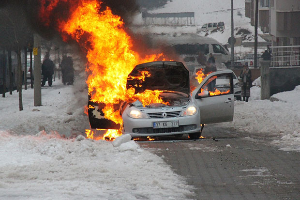 Edinilen bilgilere göre, Tosya Bahçelievler mahallesi 100. Yıl caddesinde Cahit Barutçu’ya ait 37 KG 327 plakalı otomobilde bilinmeyen nedenle yangın çıktı. Görgü tanıklarının ifadesine göre seyir halinde olan otomobilin motor kısmından alev çıkmaya başladı. Alevi gören sürücü aracını durdurarak kendini dışarı attıktan sonra alevlere müdahale etmeye çalıştı. Sürücü ve çevredeki vatandaşların araca müdahale etmek istemelerine rağmen yangın bir anda büyüdü.