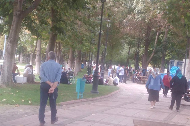İşlemleri öğle sonrasına sarkan vatandaşlar içeride havasız yerde bekleyerek sıkılmamak için çareyi kendilerini 100. Yıl Kültür Parkına atmakta buluyor.