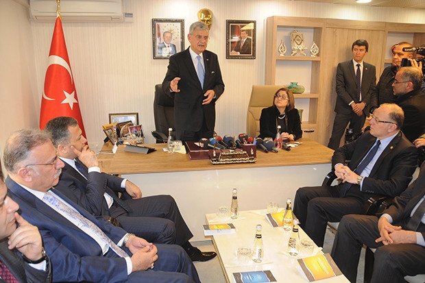 Gaziantep ziyareti kapsamında Gaziantep Valiliğini ziyaret eden Bakan Volkan Bozkır’ın ikinci durağı Gaziantep Büyükşehir Belediyesi oldu. Büyükşehir Belediye Başkanı Fatma Şahin’i makamında ziyaret eden Bozkır, Avrupa Birliği süreciyle ilgili açıklamalarda bulundu. Ziyarete Gaziantep Valisi Ali Yerlikaya, AK Parti Gaziantep Milletvekili Mehmet Erdoğan, Abdulkadir Yüksel, AB Bakan Yardımcısı Ali Şahin katıldı.