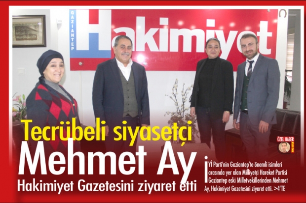 Gaziantep eski Milletvekilleri arasında renkli kişiliği ve tecrübeli siyasetiyle ön plana çıkan Mehmet Ay, Hakimiyet Gazetesi Yazı İşleri Müdürü Sabiha Kocaman ile Gazeteci Merve Tanrıöver ile görüş alış verişinde bulundu. Ziyarette Mehmet Ay'a Gazeteci Murat Dai eşlik etti.