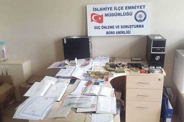 Şüphelilerin evlerinde çok sayıda arsa ve tarla tapu senetleri, dekontlar, alacak verecek hesaplarını gösteren ajanda ve defterler ile çeşitli çap ve markalarda iki tabanca ve mermiler ile bir miktar döviz ve Türk parası ele geçirildi.