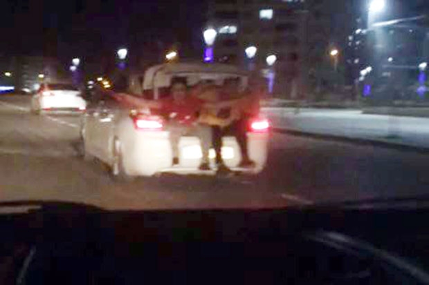 Bagajdaki 3 çocuğun tehlikeli yolculuğu cep telefonu ile görüntülendi. Görüntülerin nerede çekildiği belli olmazken, 3 çocuğun bagajda yaptığı tehlikeli yolculuk vatandaşlar tarafından görüntülendi. Daha sonra araç trafikte gözlerden kayboldu.
