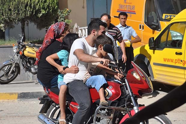 Cumhuriyet Mahallesi’nde, normalde 2 kişinin kask takarak binmesi gereken motosiklette 3'ü çocuk 5 kişinin bindiğini görenler şaşkına döndü. Motosiklettekilerin kask takmadan ve tehlikeli şekilde yolculuk yaptığını görenler gözlerine inanamadı. Trafikte tehlikeye yol açan sürücü, diğer sürücülerin ve vatandaşların meraklı bakışları arasında bir süre sonra gözden kayboldu.
