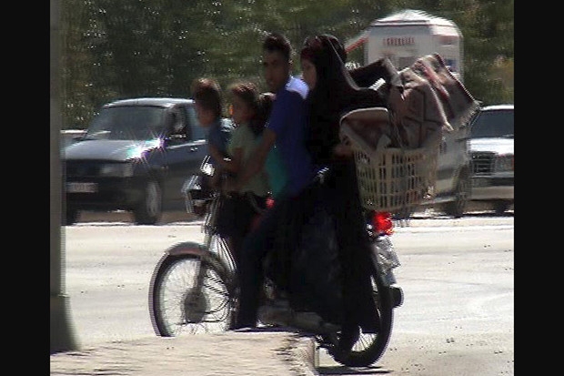 Gaziantep Havalimanı yolu üzerinde bir kişi motosikletine 3 çocuğu, eşini bindirip, arka bölüme de piknik sepeti yerleştirerek yolculuk yaptı. Ön tarafına 3 çocuğunu oturttuğu, arkasında da eşi ile yolculuk yapan sürücü, trafikte görenleri şaşkına çevirdi. Başlarında koruyucu kask bulunmayan 3'ü çocuk 5 kişi motosiklette tehlikeye ve şaşkın bakışlara aldırış etmeden yoluna devam etti.