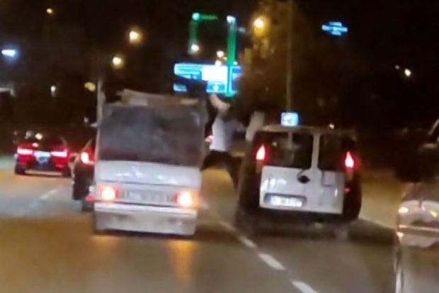 Şehitkamil ilçesi İpekyolu'nda kaydedilen görüntüler görenleri hayrete düşürdü. Bir düğün konvoyuna katılan kamyonetle hafif ticari araçtan sarkan trafik magandaları yürekleri ağızlara getirdi. Araçtan sarkanlardan biri iki araç arasında yolculuk yaptığını gören vatandaşlar o anları cep telefonları ile anbean kaydetti.