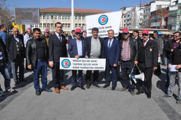 Öğle saatlerinde Yeşilsu Meydanı’nda toplanan işçiler adına konuşan Türk-İş Temsilcisi Nuri Bay, Türkiye’de 11 milyon çalışanın olduğunu ancak bunlardan sadece 1 milyon işçinin kıdem tazminatının garanti altında olduğunu söyledi. Kıdem tazminatı hakkının kaldırılmasının işçilere büyük haksızlık olacağını savunan Bay, şöyle konuştu: "Ülkemizde kıdem tazminatı hakkının kaldırılmak istenmesi düpedüz gasp girişimidir. Sayın Çalışma Bakanımız sendikalara, halka ve kamuoyuna rağmen bu çalışmada ısrar etmesi asla kabul edilemez. Bu çalışmada sosyal devlet ve sosyal adaletten söz etmek mümkün değildir. Bu çalışmaya ısrar edilmesi durumunda Türk-İş’e bağlı sendikalar ve eylemlilik geleneklerimizi tozlu raflardan indirerek genel grev dahil olmak üzere yüz binleri meydanlarda sokaklarda buluşturabiliriz." İşçiler, basın açıklamasının ardından stant açarak kıdem tazminatının kaldırılmaması için imza kampanyası başlattı.