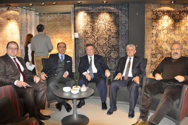 Almanya’nın Hannover kentinde düzenlenen ve sektöründe dünyanın en büyük fuarı olma özelliğini taşıyan Uluslararası Domotex Halı ve Zemin kaplamaları Fuarına katılan Türk halı firmalarının standlarını ziyaret eden Türkiye’nin Hannover Baş Konsolosu Mehmet Günay Türkiye Halı Sektör Kurulu Başkanı Salahattin Kaplan’dan bilgi aldı.