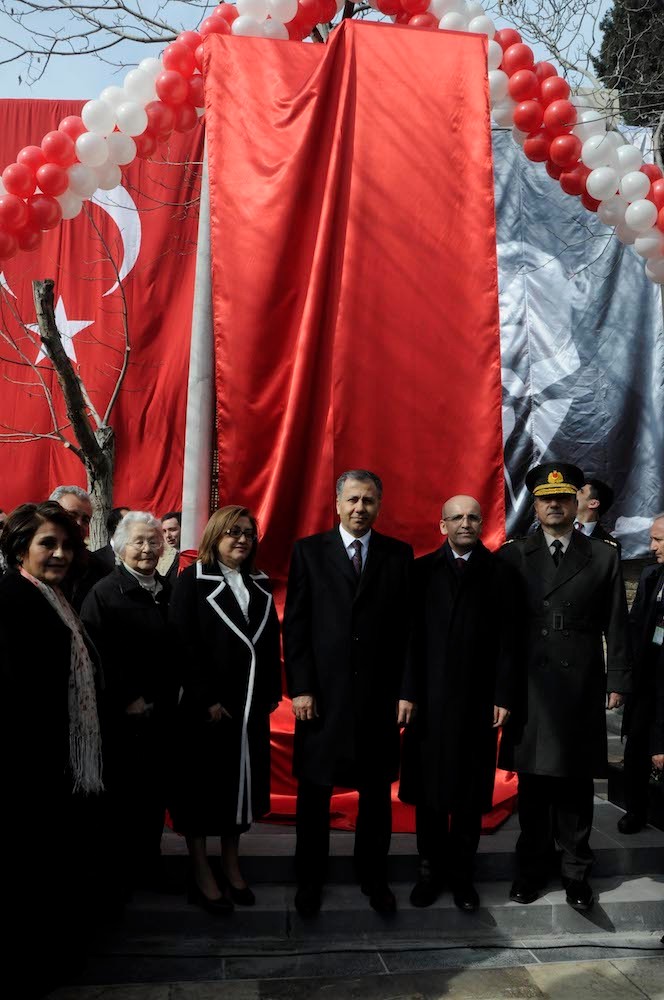 Şahin'in konuşmasının ardından şehitler anıtının açılışı yapıldı. Açılışın ardından caminin avlusundaki sembolik şehit kadınların mezarına Bakan Şimşek ve beraberindekiler karanfil bıraktı.
