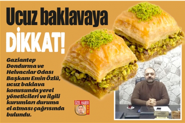 Gaziantep Dondurma ve Helvacılar Odası Başkanı Emin Özlü, Ucuz satılan baklavalar konusunda vatandaşı uyardı. Ucuz baklavanın Gaziantep’i temsil etmediğini belirten Özlü, yerel yöneticileri ve ilgili kurumları duruma el atması çağrısında bulundu. Özlü, “Ucuz baklavalar Şanlıurfa’dan geliyor. Baklavanın içerisinde olduğu söylenen malzemelerin hepsi yok ve sağlıklı olmadığından kimse alıp yemesin. İçinde kullanılan fıstık birinci sınıf değil, kalitesi düşük fıstıktır. Kesinlikle ucuz satılan baklavalar şehrimizi temsil edemez. Gaziantep’in yönetenlerin ve ilgili kurumların bu duruma el atması gerekiyor” diye konuştu.