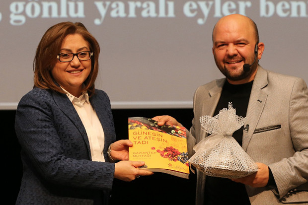 Program sonrası Büyükşehir Belediye Başkanı Fatma Şahin Uğurluel’e teşekkür ederek programa katkılarından dolayı Gaziantep’e özgü bakır ve kitap hediye etti.