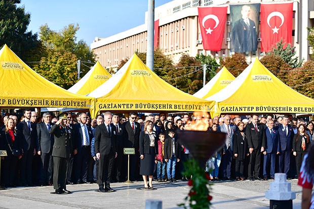 Atatürk, ebediyete irtihalinin 81'inci yıl dönümünde düzenlenen törenle anıldı. Gaziantep 15 Temmuz Demokrasi Meydanı'nda düzenlenen törende, Gaziantep Valisi Davut Gül, 5'inci Zırhlı Tugay Komutanı Tuğgeneral Hacı Halil Osma, Büyükşehir Belediye Başkanı Fatma Şahin tarafından Atatürk Anıtı'na çelenk sunuldu. Saatlerin 09.05'i göstermesiyle sirenler çaldı, törene katılanlar saygı duruşunda bulundu ve akabinde okunan İstiklal Marşı ile tören sona erdi. Demokrasi Meydanı’nda gerçekleştirilen anma töreninin sona ermesinin ardından Şehitkâmil Kültür Merkezi’nde, Yasemin Erman Balsu Anadolu Lisesi tarafından hazırlanan “Sen Mustafa Kemalsin” temalı anma programı ile Gazi Mustafa Kemal Atatürk’ün hayatı anlatıldı. Tören ve programa, Vali Gül, Tugay Komutanı Osma ve Başkan Fatma Şahin'in yanı sıra Gaziantep Milletvekilleri Müslüm Yüksel, Bayram Yılmazkaya, adli, idari, askeri ve siyasi erkanın temsilcileri, sivil toplum kuruluşları, şehit ve gazi derneklerinin mensupları vatandaşlar ve öğrenciler katıldı.