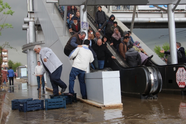 Sağanak ve dolu nedeniyle tıkanan rögardaki kanalizasyon suyu taşıp yolları göle çevirdi. Gaziantep Üniversitesi Şahinbey Araştırma ve Uygulama Hastanesi'ne geçiş için üst geçide çıkıp mahsur kalan, aralarında hastaların da bulunduğu çok sayıda vatandaş güçlükle kurtarıldı.
