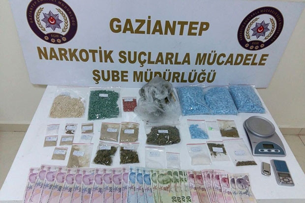 Gaziantep Emniyet Müdürlüğüne bağlı Narkotik Suçlarla Mücadele ekiplerince, uyuşturucu madde imal ve ticareti ile uyuşturucu satıcılarının yakalanmalarına yönelik operasyonlara devam edildi. Son bir hafta içerisinde yürütülen çalışmalar sonucu Hacıbaba, Mithatpaşa, Yeşilova, Karşıyaka, Vatan, Bey, Fırat, Karayılan, Akdere, Çağlayan, Güneykent ve Yeditepe mahallelerinde bazı ikamet ve iş yerlerine yapılan operasyonlarda,418 gram esrar, 118 gram metamfetamin, 66 gram eroin, 19 gram bonzai, 141 adet extacy, 70 adet captagon uyuşturucu hap, 3 adet hassas terazi, 1 adet pompalı tüfek ile uyuşturucu madde satışından elde edilen 8 bin 795 TL ele geçirildi.